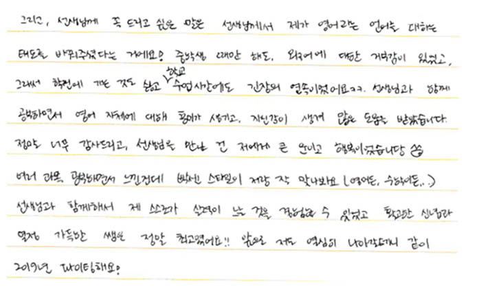 어떤 나라의 언어도 한순간에 완성될 수는 없습니다. 그래서 다른 교과목보다 꾸준하게! 자신감을 가지고!! 실력을 올릴 수 있도록 공부해야 합니다.